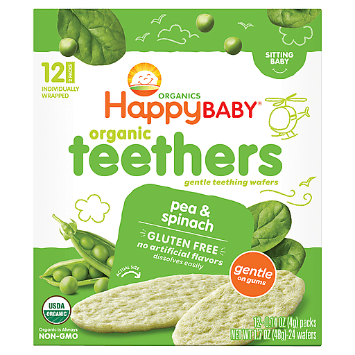 Happy Baby Teething Wafers, Gentle, Pea & Spinach, Teethers, 2 Pack 12 Ea